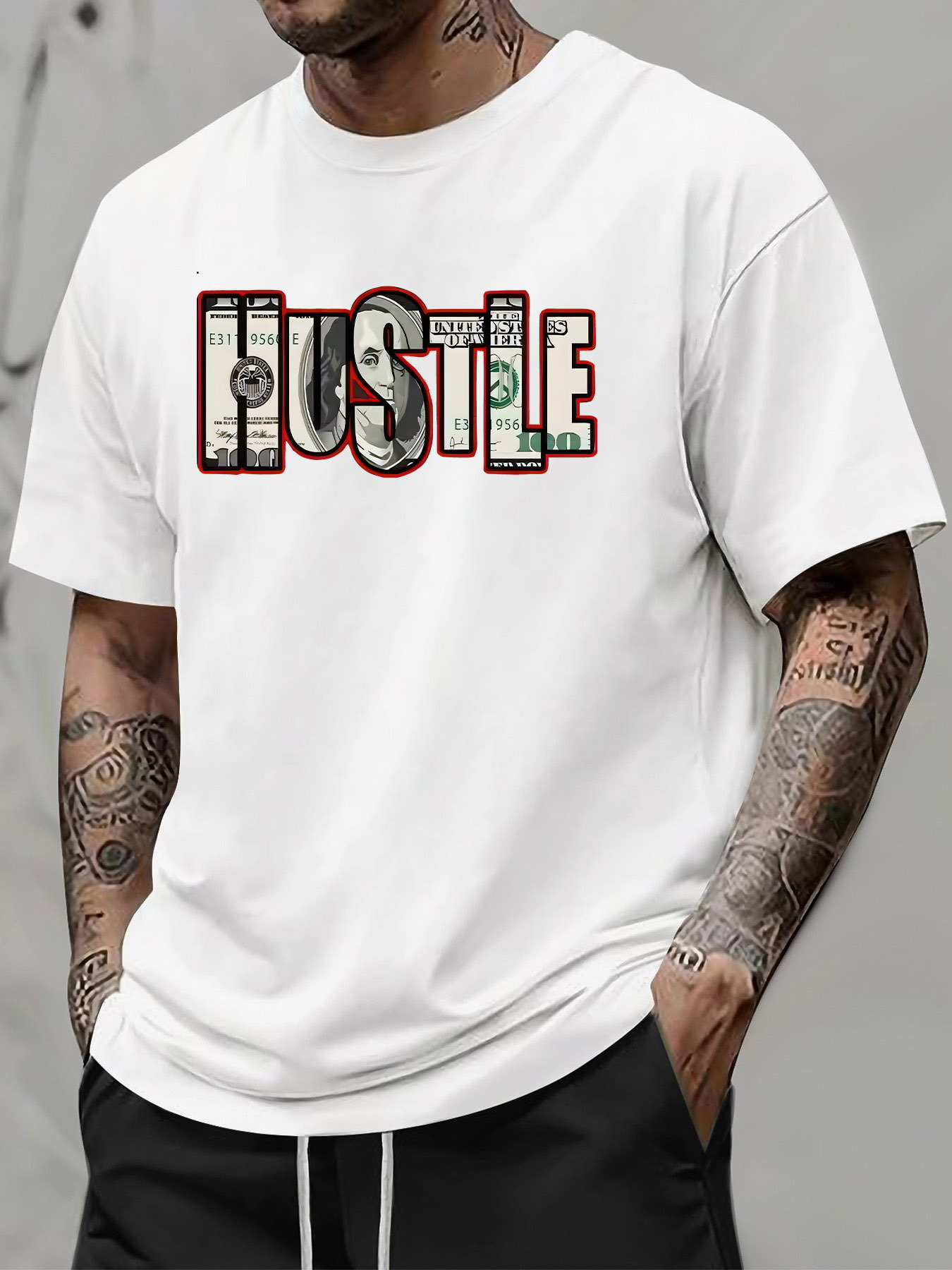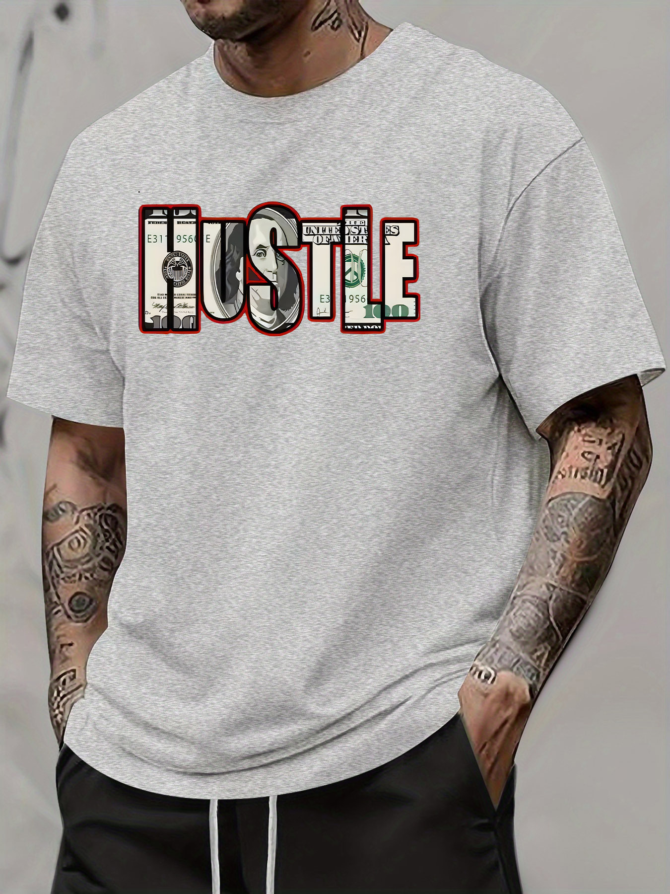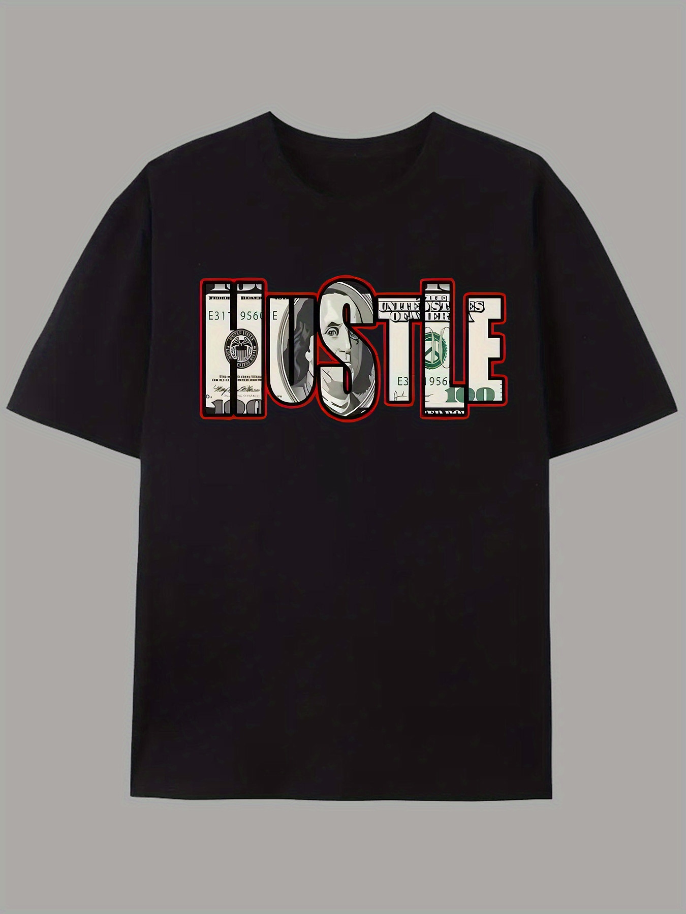 Men's Hustle Graphic T-Shirt - Casual Streetwear Style, Unisex Short Sleeve Tee with Bold Money Print, Lightweight Polyester Blend, Summer Essential for Men and Women, Unisex Tshirt | Bold Print Shirt | Money Theme Apparel