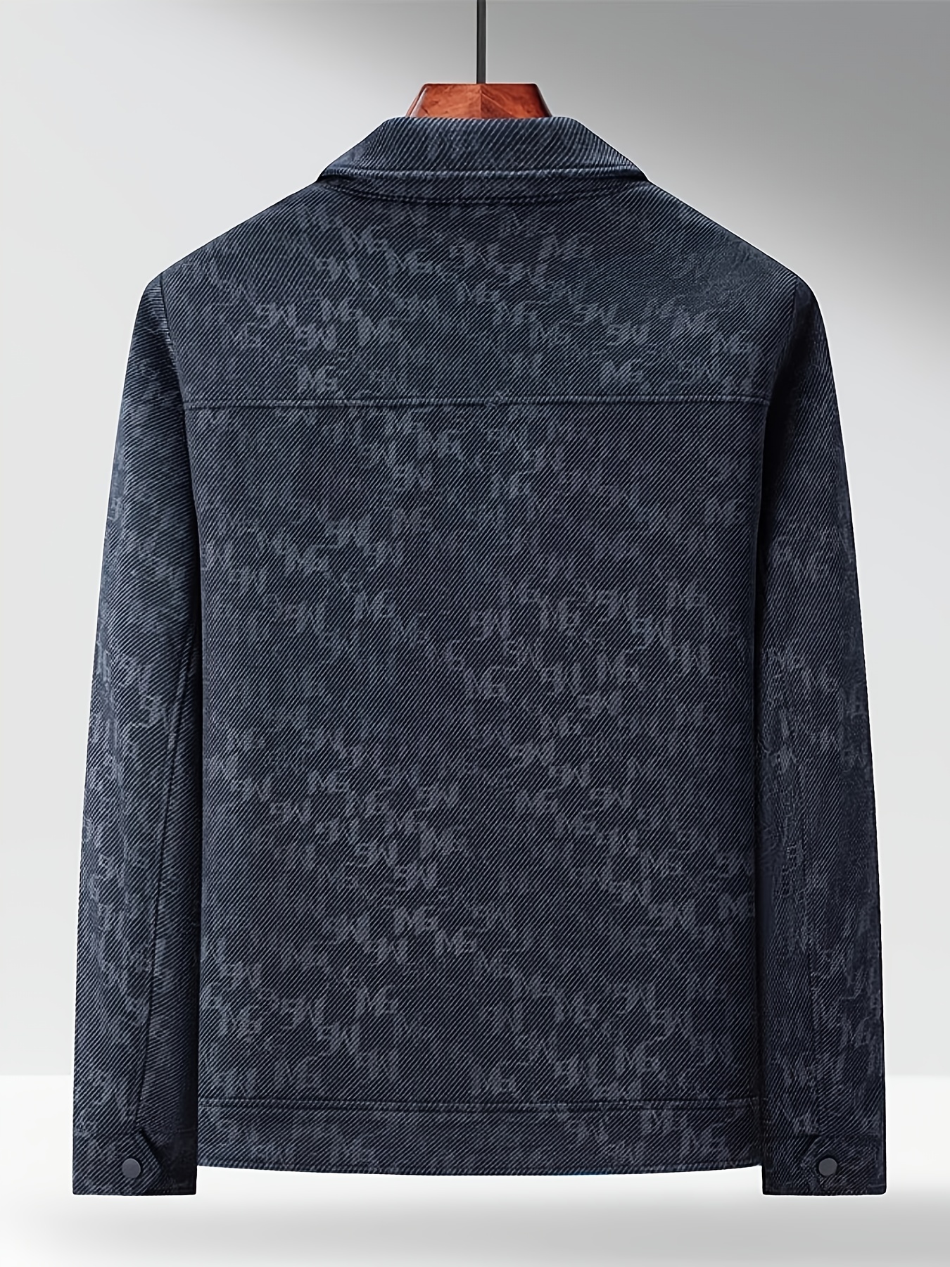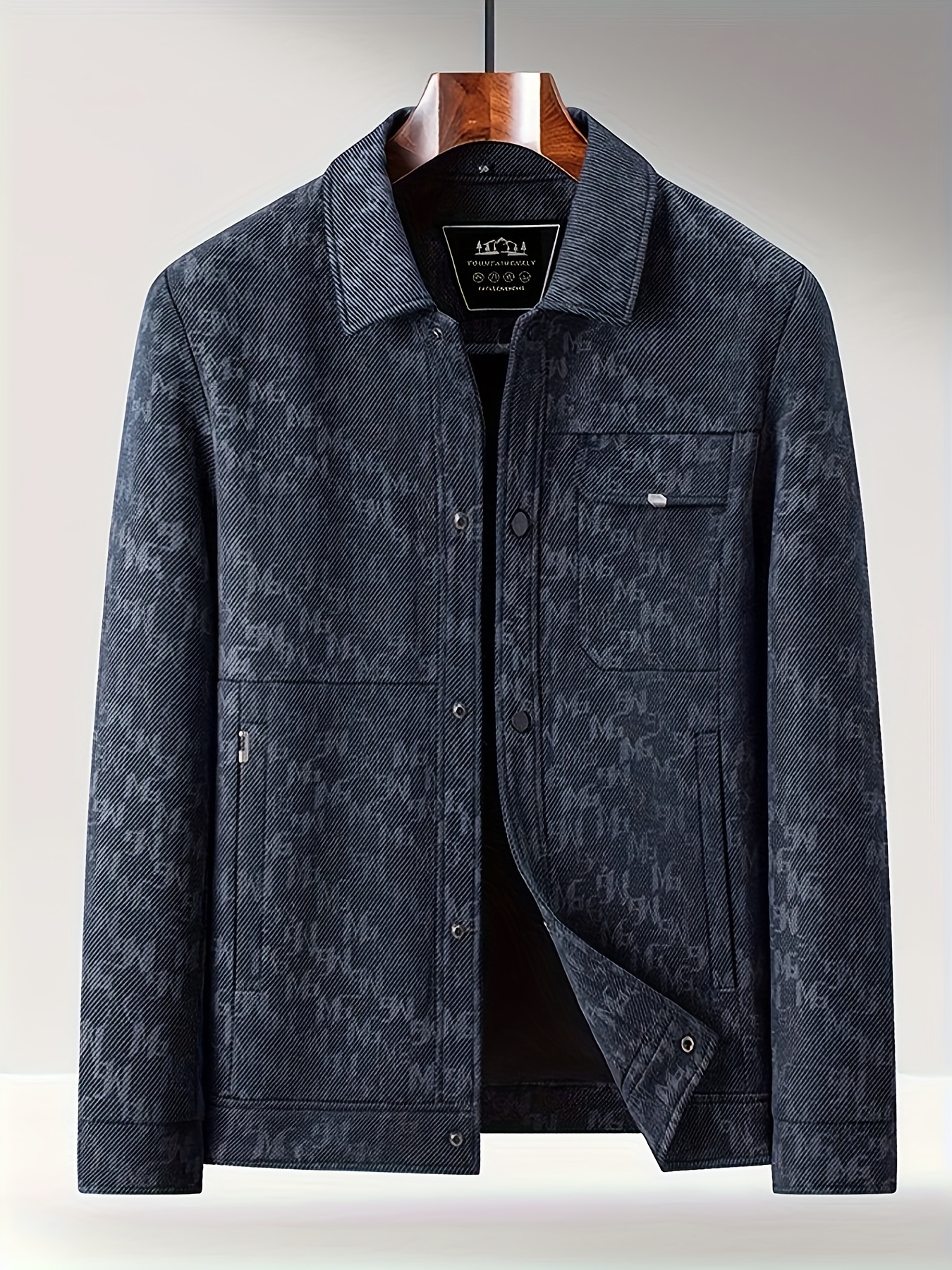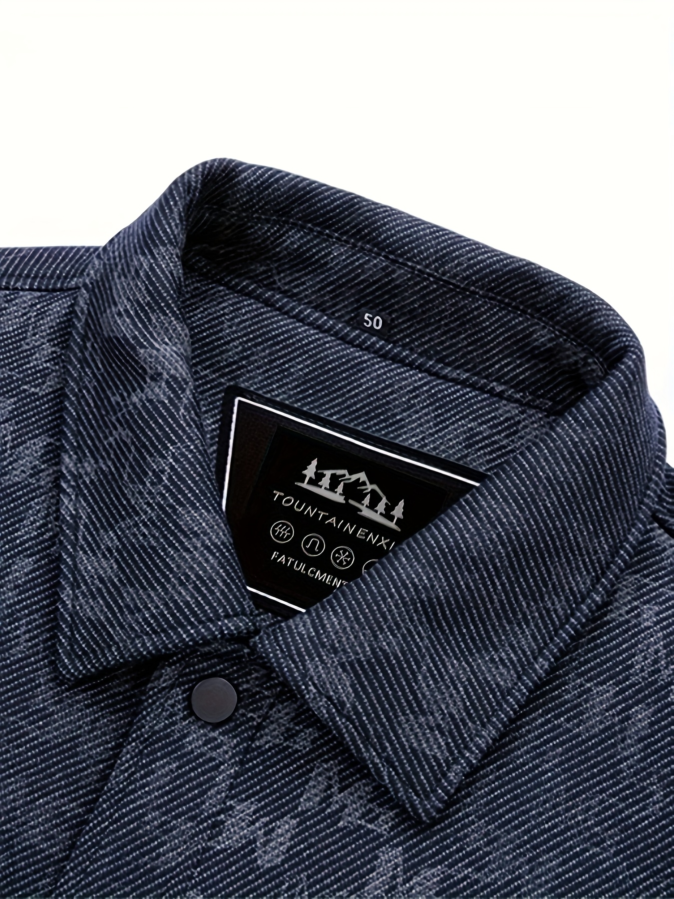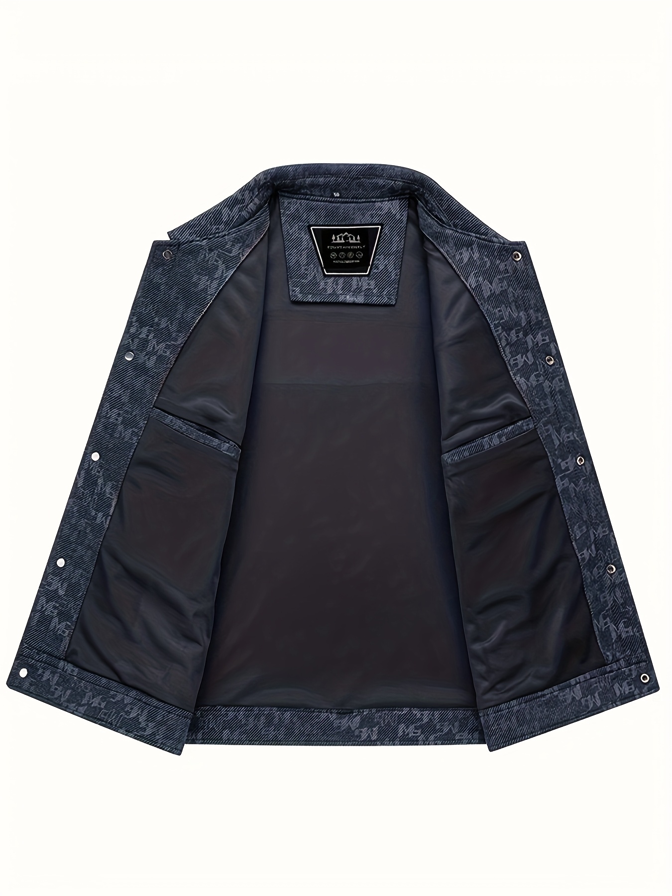 Men's Navy Blue Bomber Jacket with White Camo & Chest Pocket - Short Single-Breasted Casual & Business-Casual Coat, Collar, Button-Front Door, (No-Fill) for Fall/Spring Outerwear