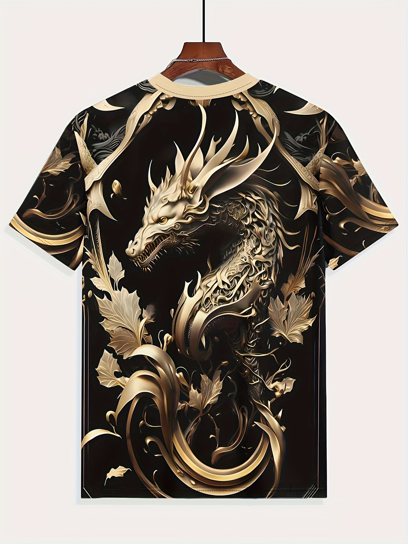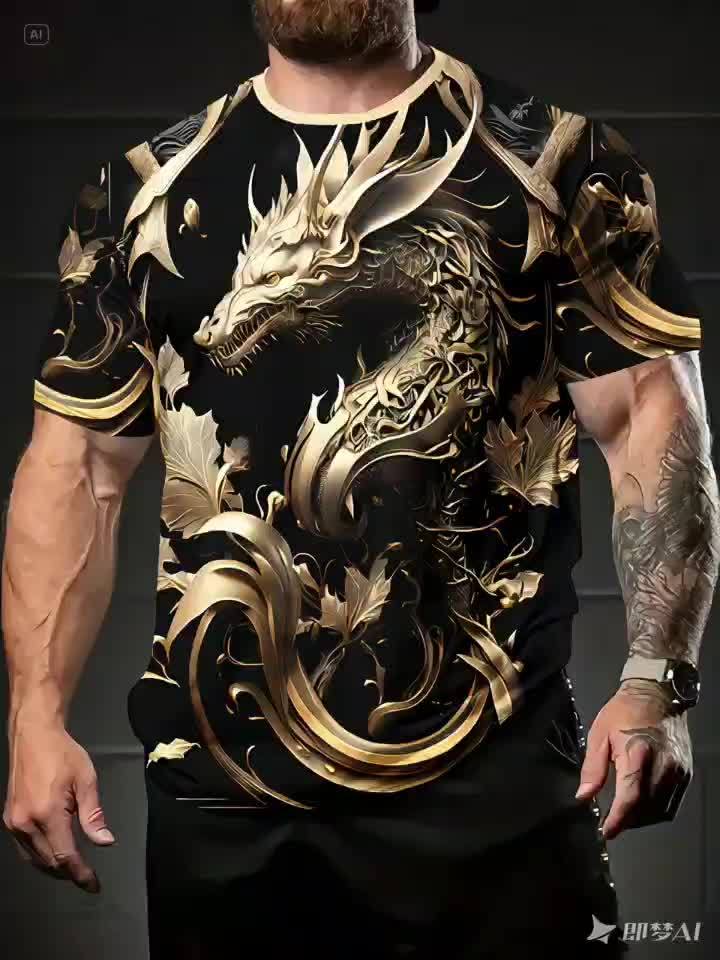 Summer Fashion Golden Dragon Print Short-Sleeved Round Neck T-Shirt - Men's Casual All-Match Outdoor Top