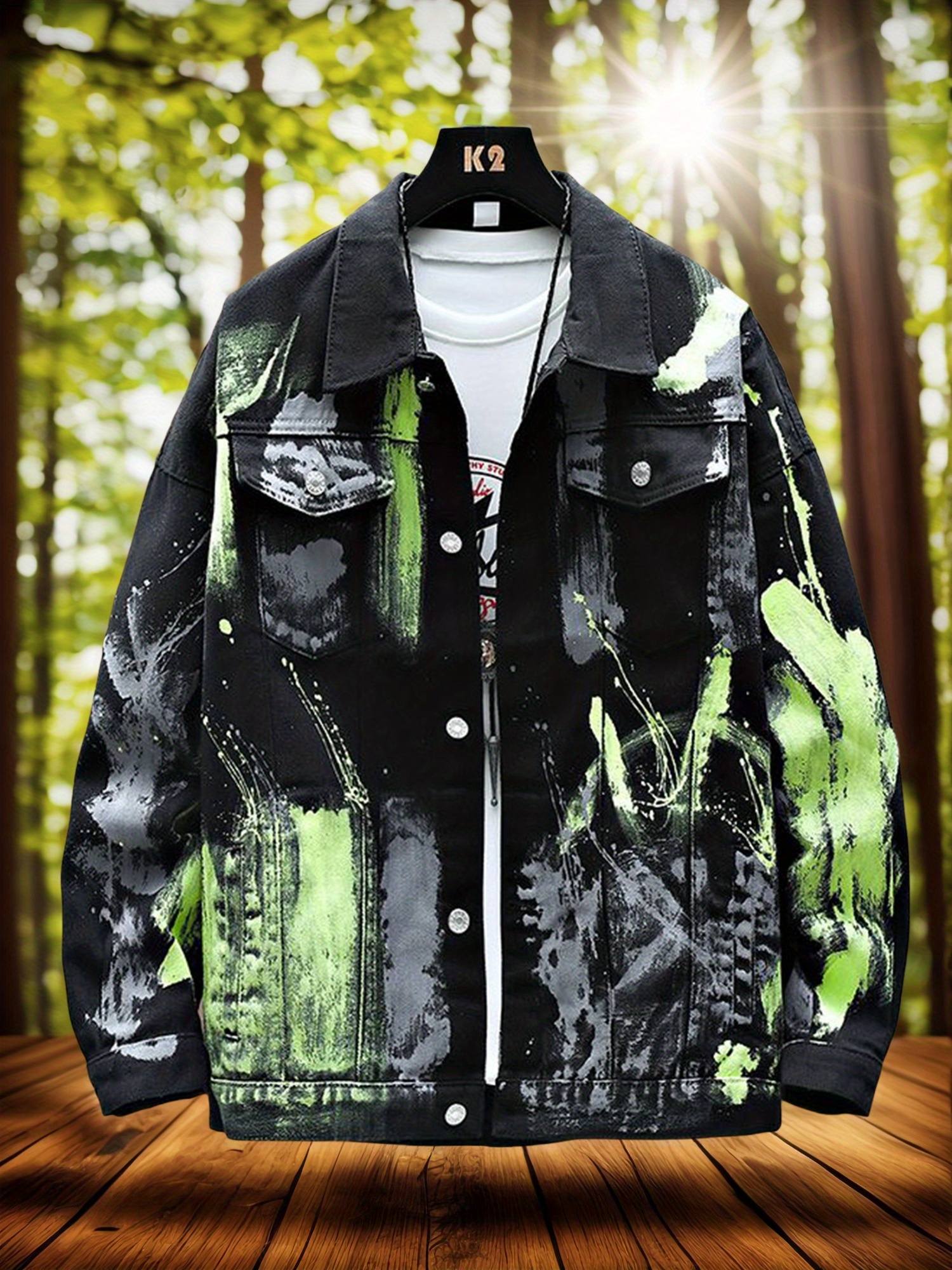 Men'S Printed with Random Print And Graffiti Design, Fashionable And Versatile, Made of High-Quality Fabric, Soft in Texture, Loose And Comfortable Coat.