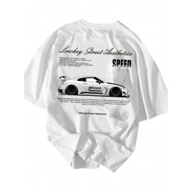 Men'S Red "SPEED" Graphic T-Shirt - Soft Polyester, Machine Washable, Casual Streetwear with White Sports Car Design, Perfect for Summer Outdoor Activities & Shopping, Casual Summer Wear | Streetwear Fashion | Soft Polyester Fabric