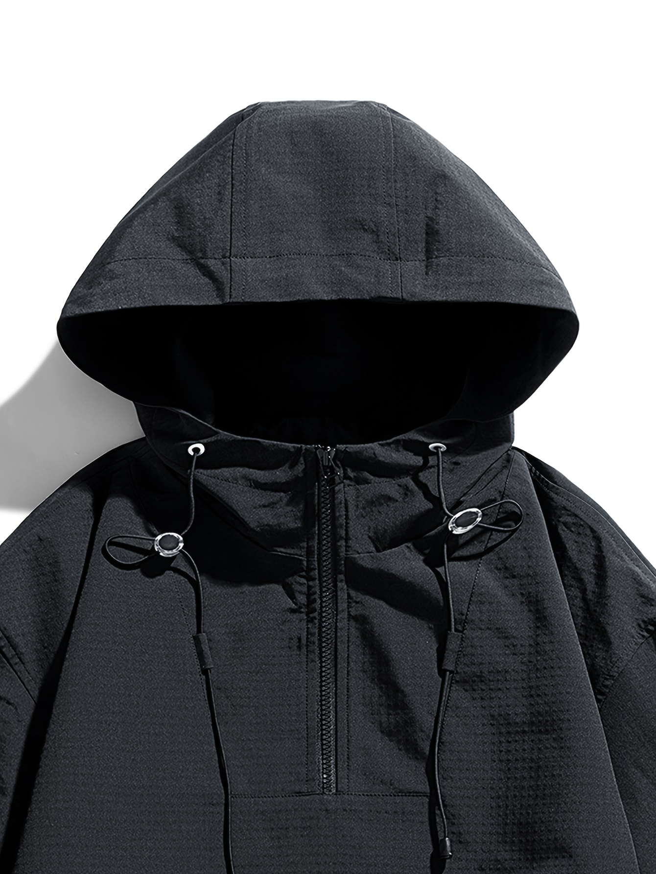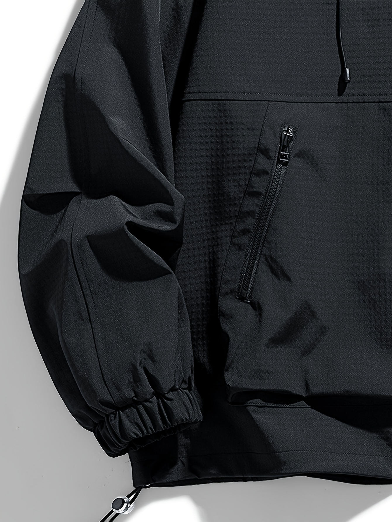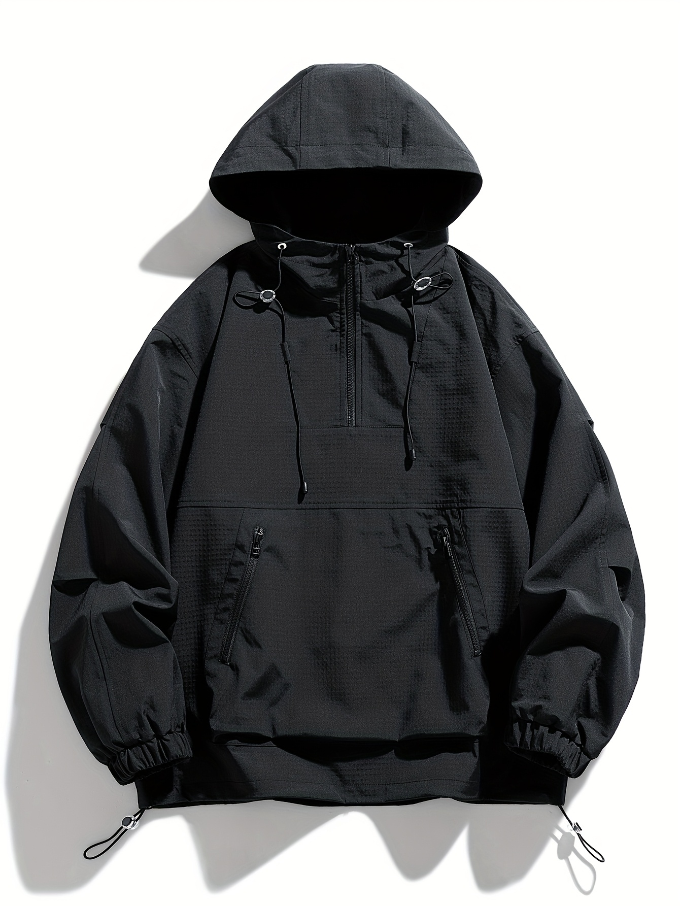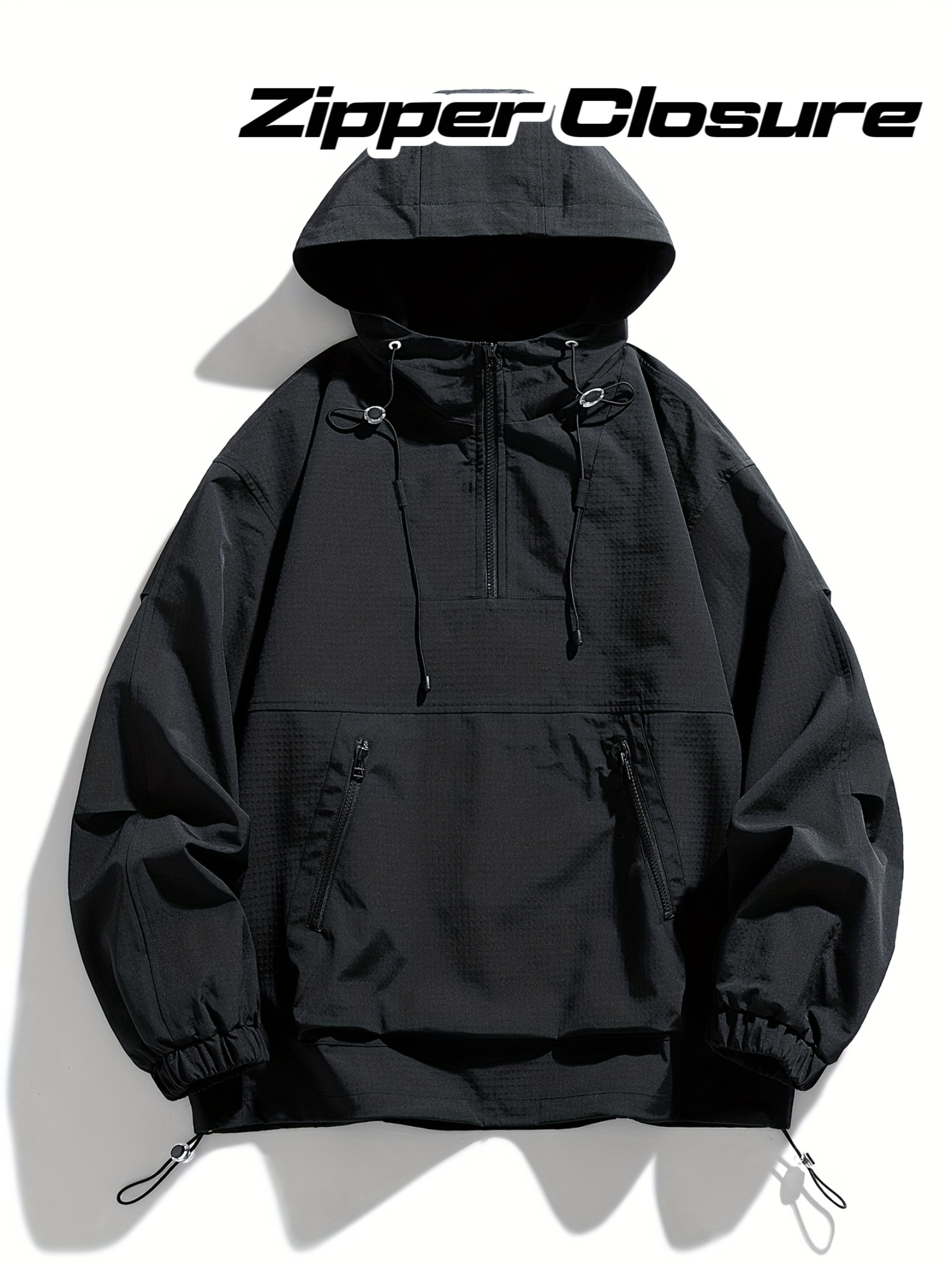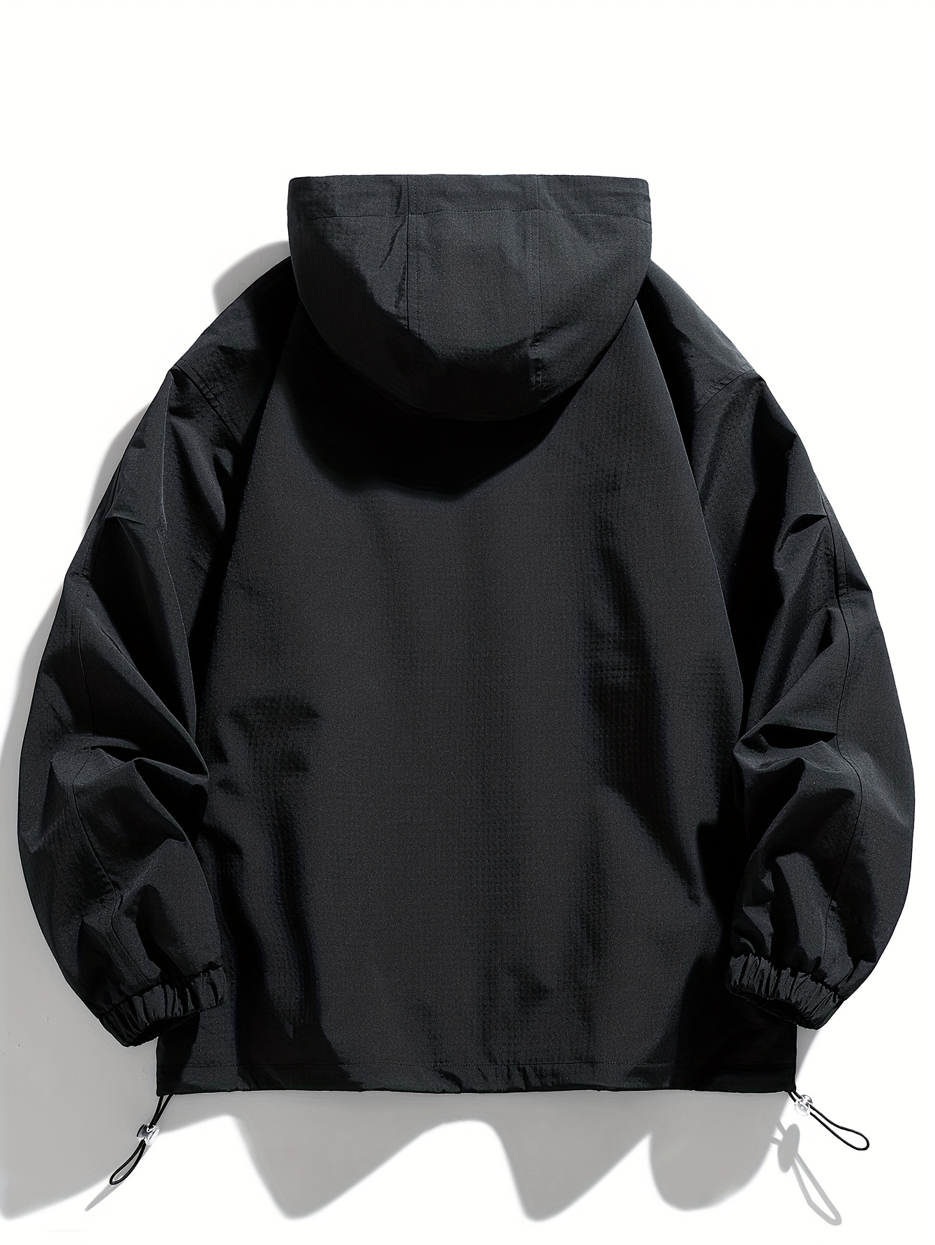 Men's Black Hooded Windbreaker Jacket - Lightweight, Polyester, Long Sleeve, Zipper Closure | Casual, Wind Protection for Spring & Fall