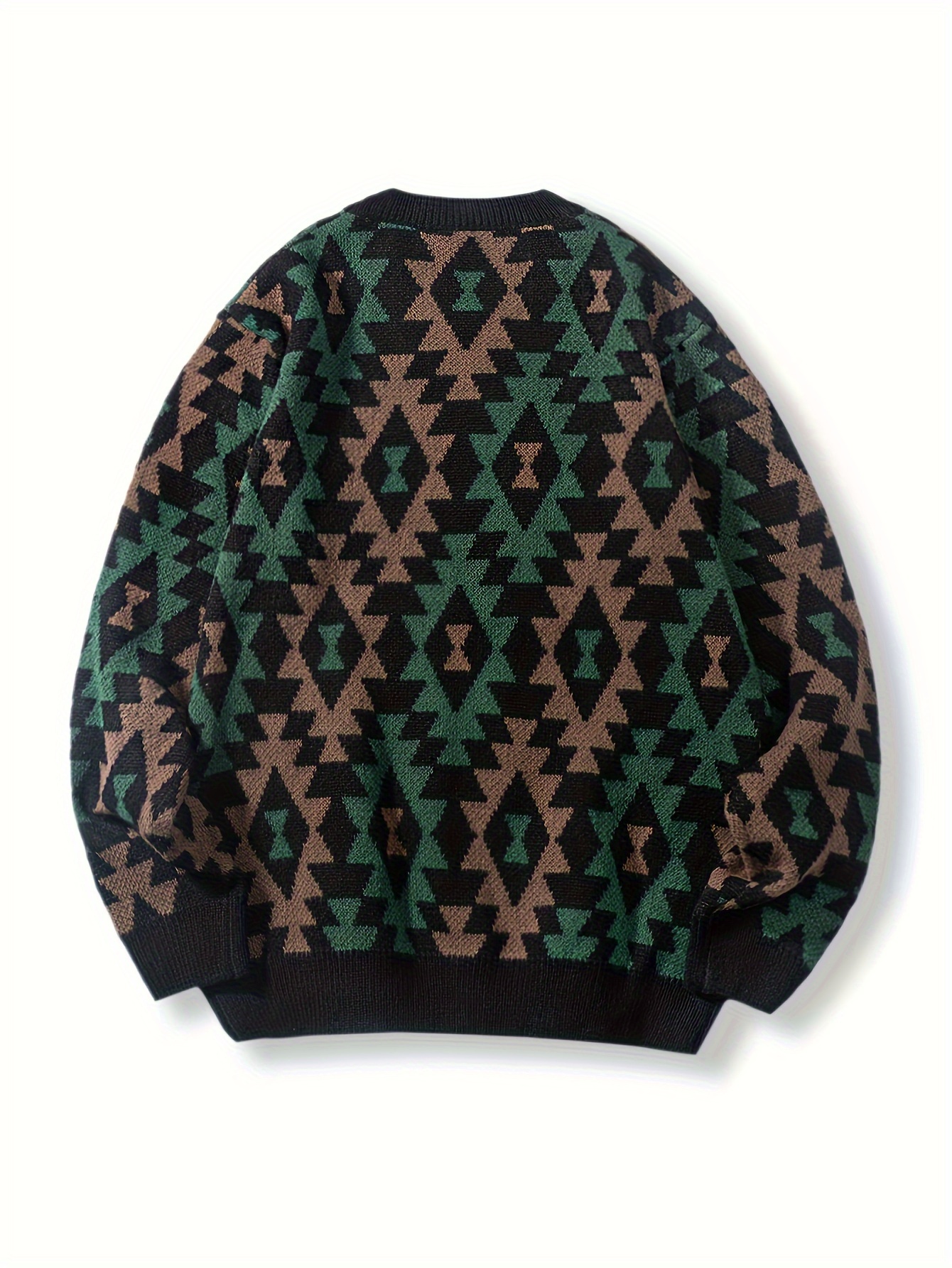 Men's Casual Geometric Pattern Knit Sweater - Asymmetrical Design, Machine Washable, Round Neck, Regular Fit for Autumn/Winter, Brown/Red/Black/White/Gray, Knit Sweater, Winter Warm Top, Autumn Fashion, Relaxed Fashion, Comfortable Wear, Durable Fabric