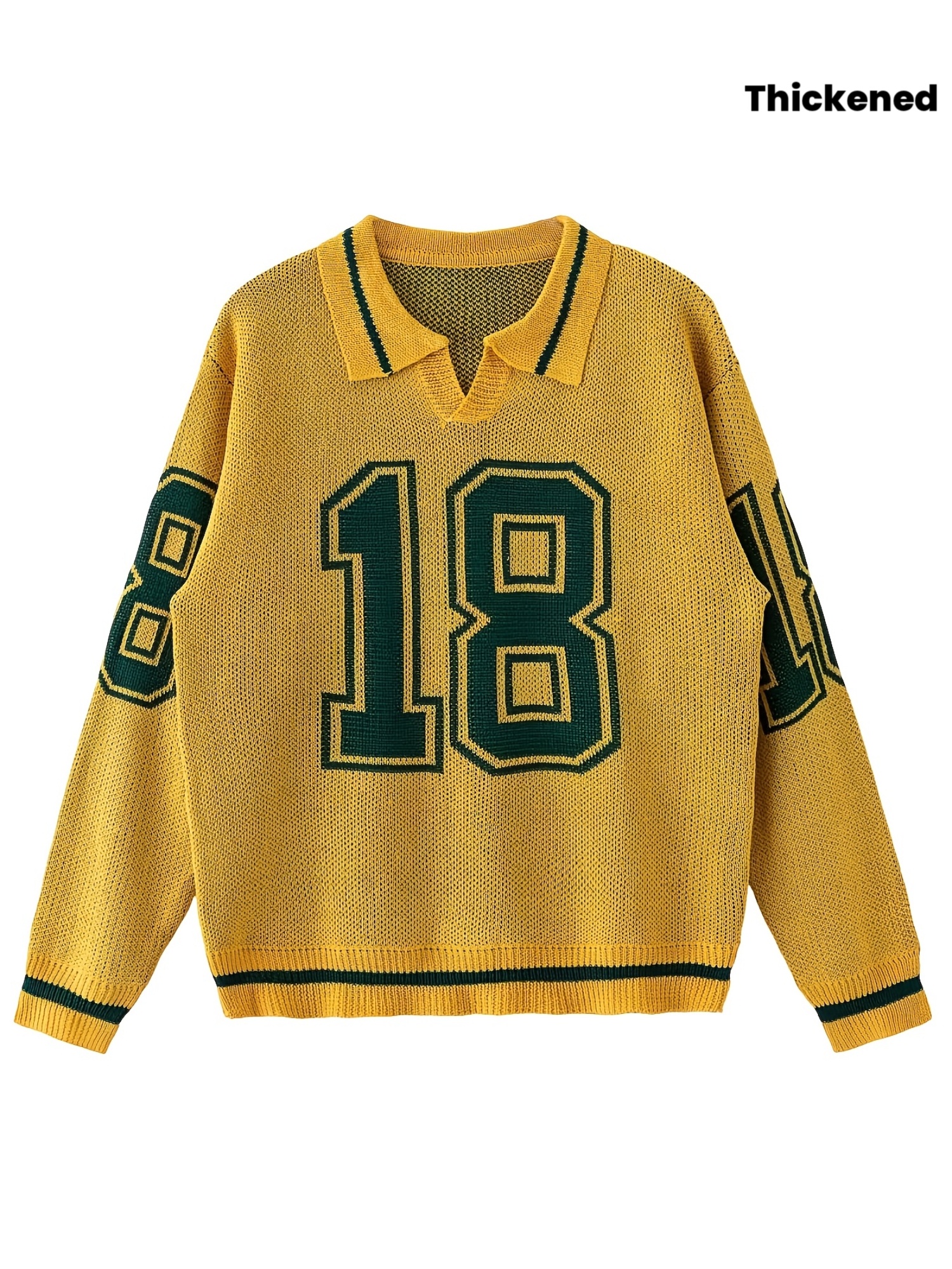 Men'S Fashion Autumn/Winter Pullover Football Number Knit Sweater Thickened Sports Style for Boys