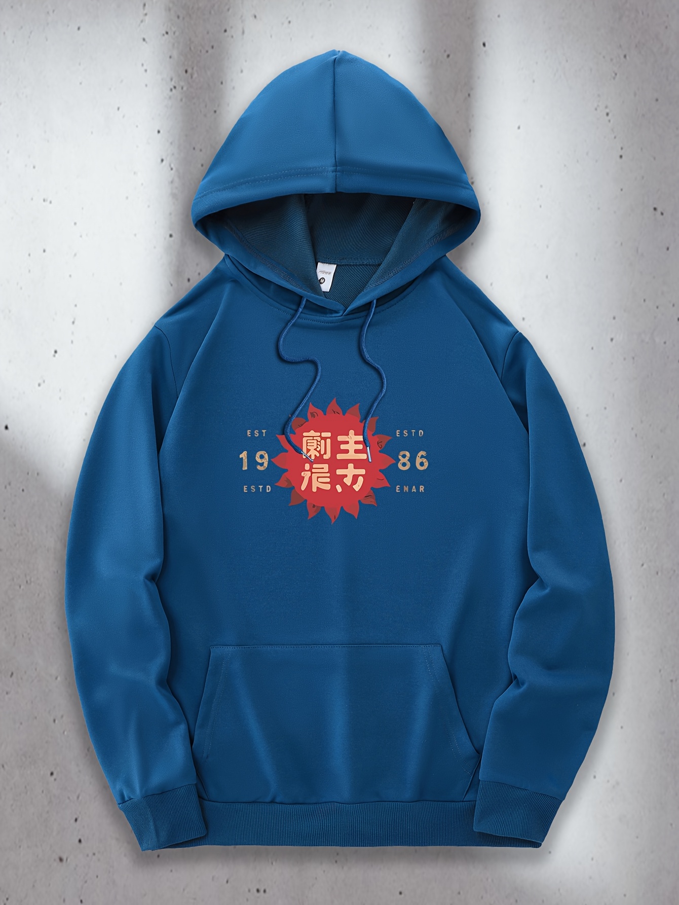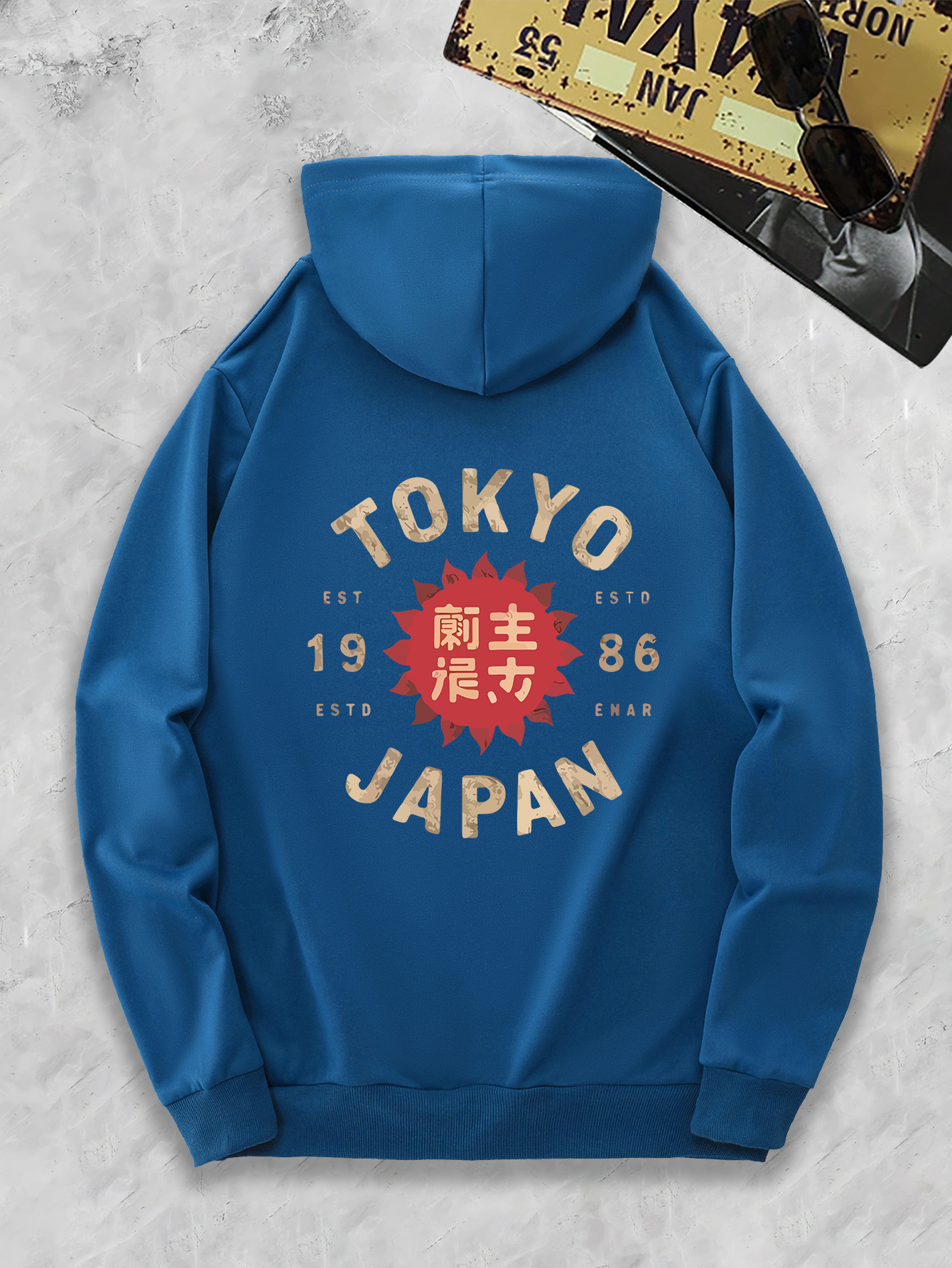 Men's Tokyo Japan Graphic Hoodie - Green Casual Pullover with Kangaroo Pocket & Adjustable Drawstring, Geometric Print Streetwear, Machine Washable All-Season Comfort