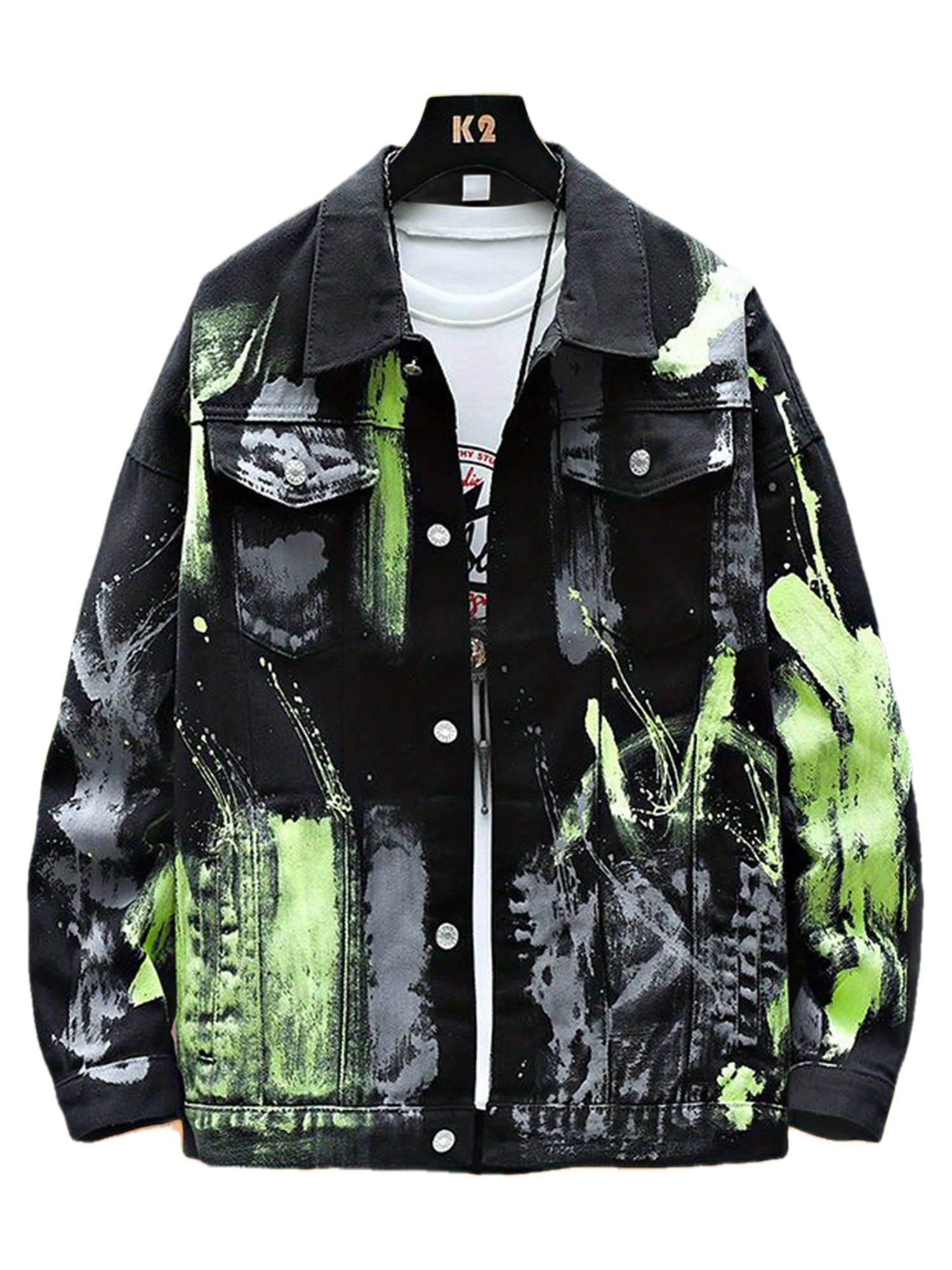 Men'S Printed with Random Print And Graffiti Design, Fashionable And Versatile, Made of High-Quality Fabric, Soft in Texture, Loose And Comfortable Coat.