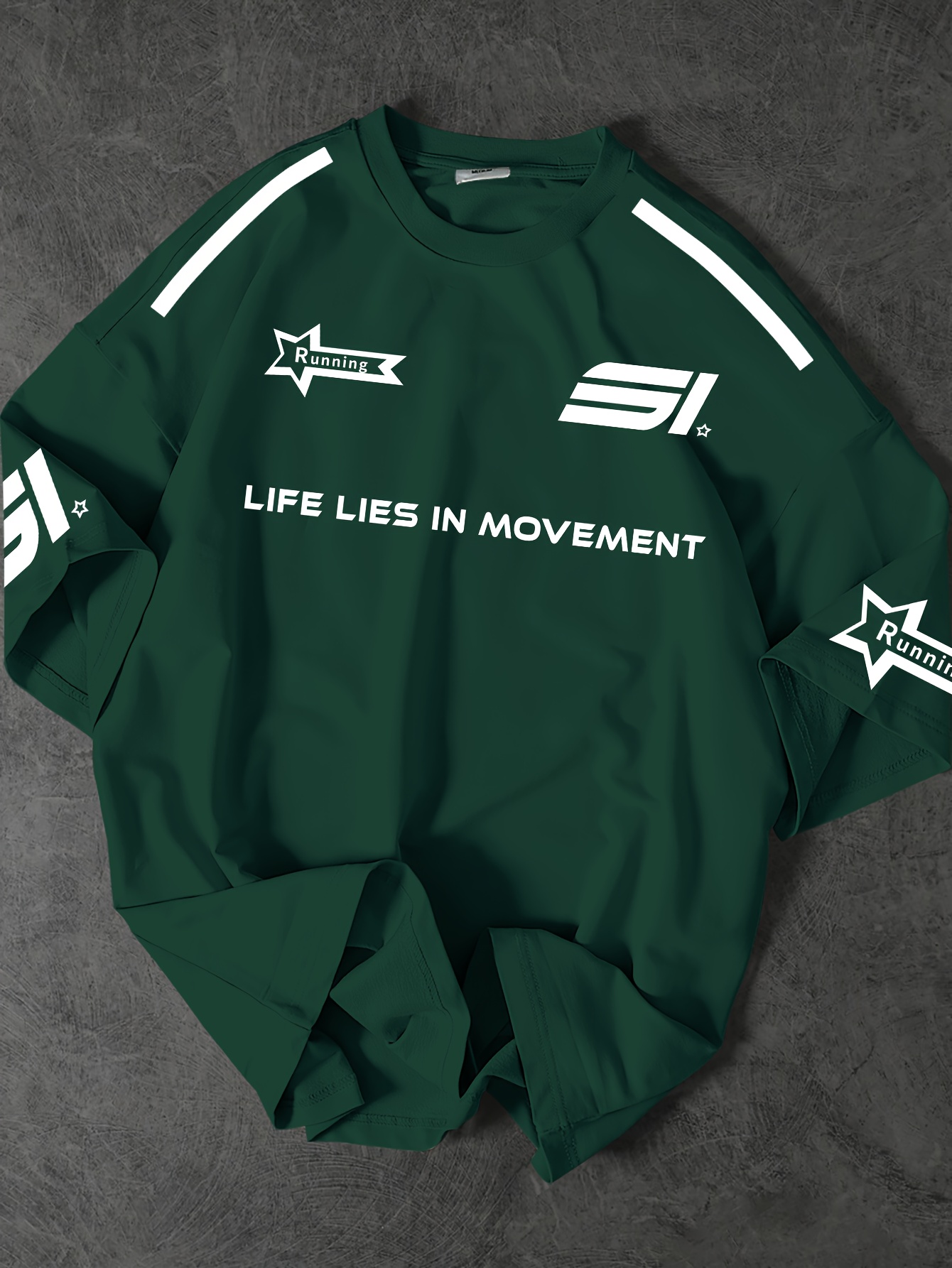 [Men's Slogan T-Shirt] Soft Polyester Men's Street Fashion T-Shirt | "LIFE LIES IN MOVEMENT" Slogan, Casual Loose Fit, Machine Washable