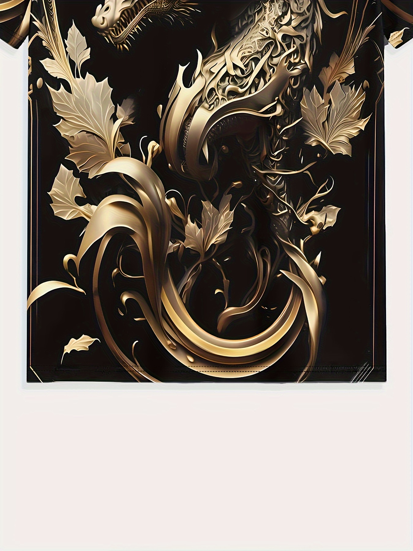 Summer Fashion Golden Dragon Print Short-Sleeved Round Neck T-Shirt - Men's Casual All-Match Outdoor Top