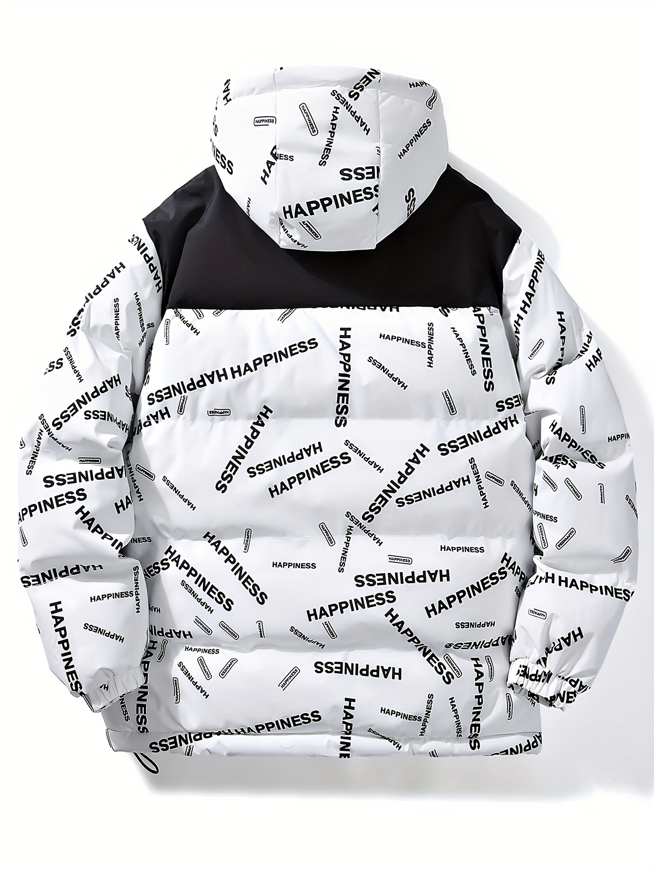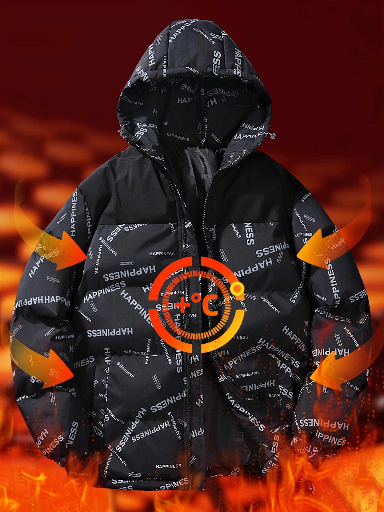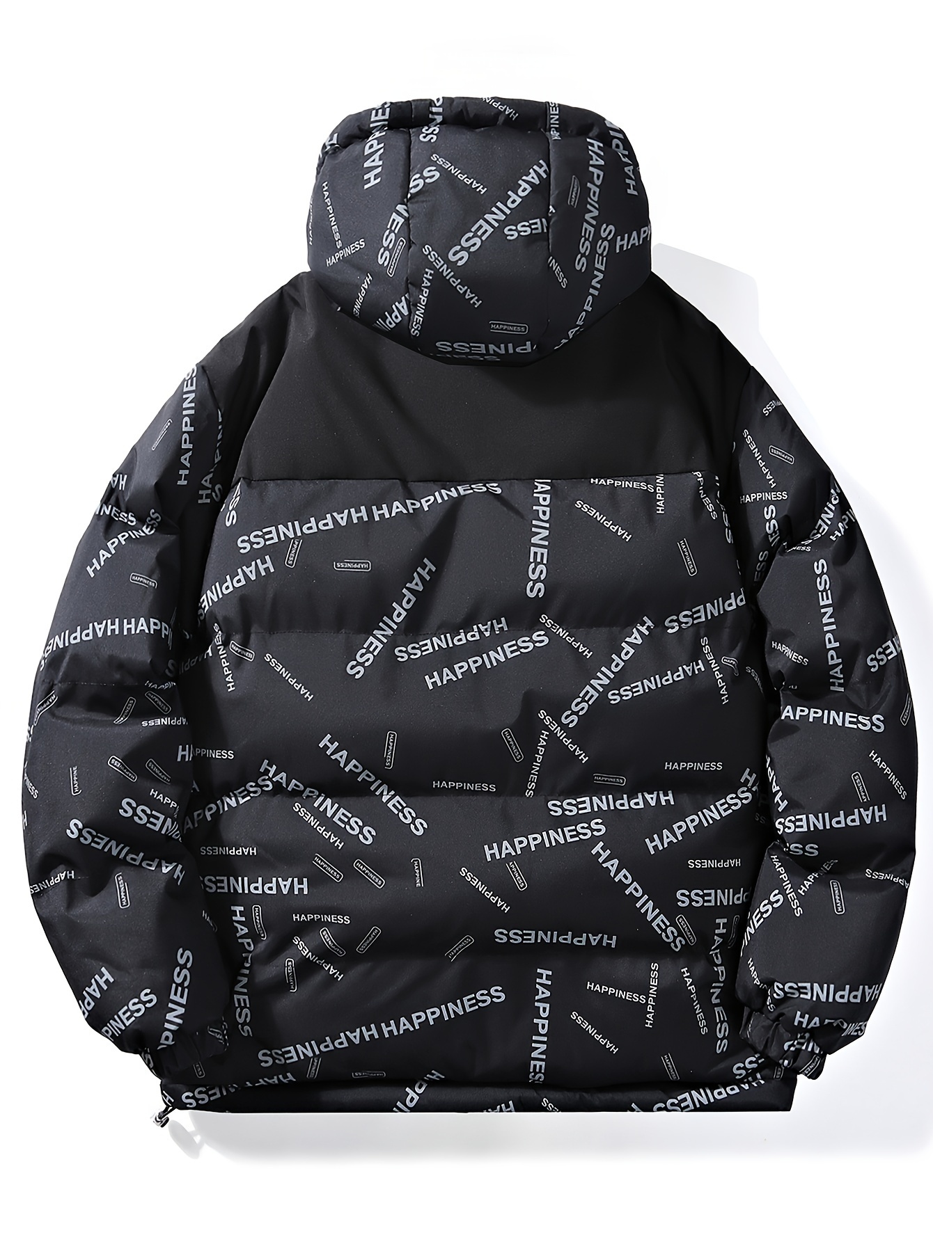 [Windproof Jacket] Warm & Stylish Men's Thick Windproof Hooded Jacket | Large Pockets & Drawstring, Black Polyester, Casual Letter Print Versatile Outerwear, Durable Outerwear