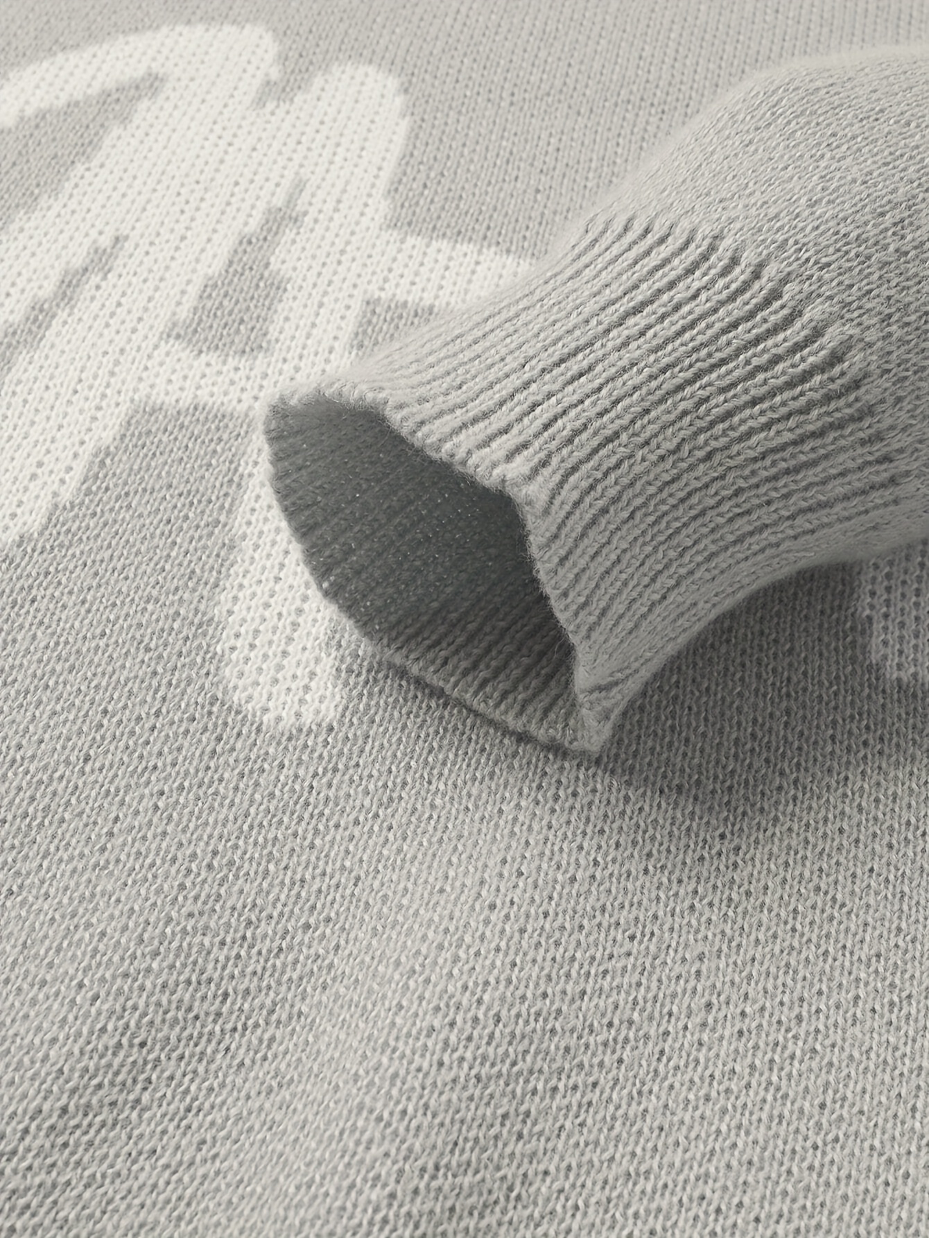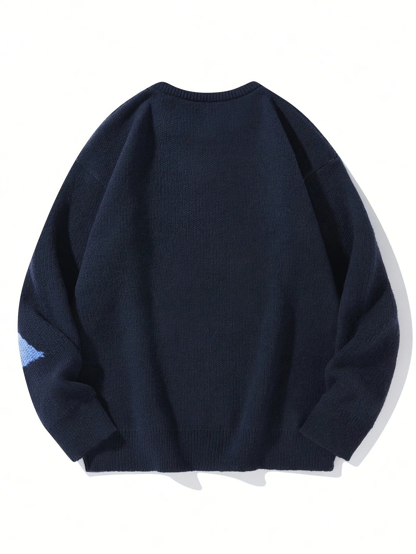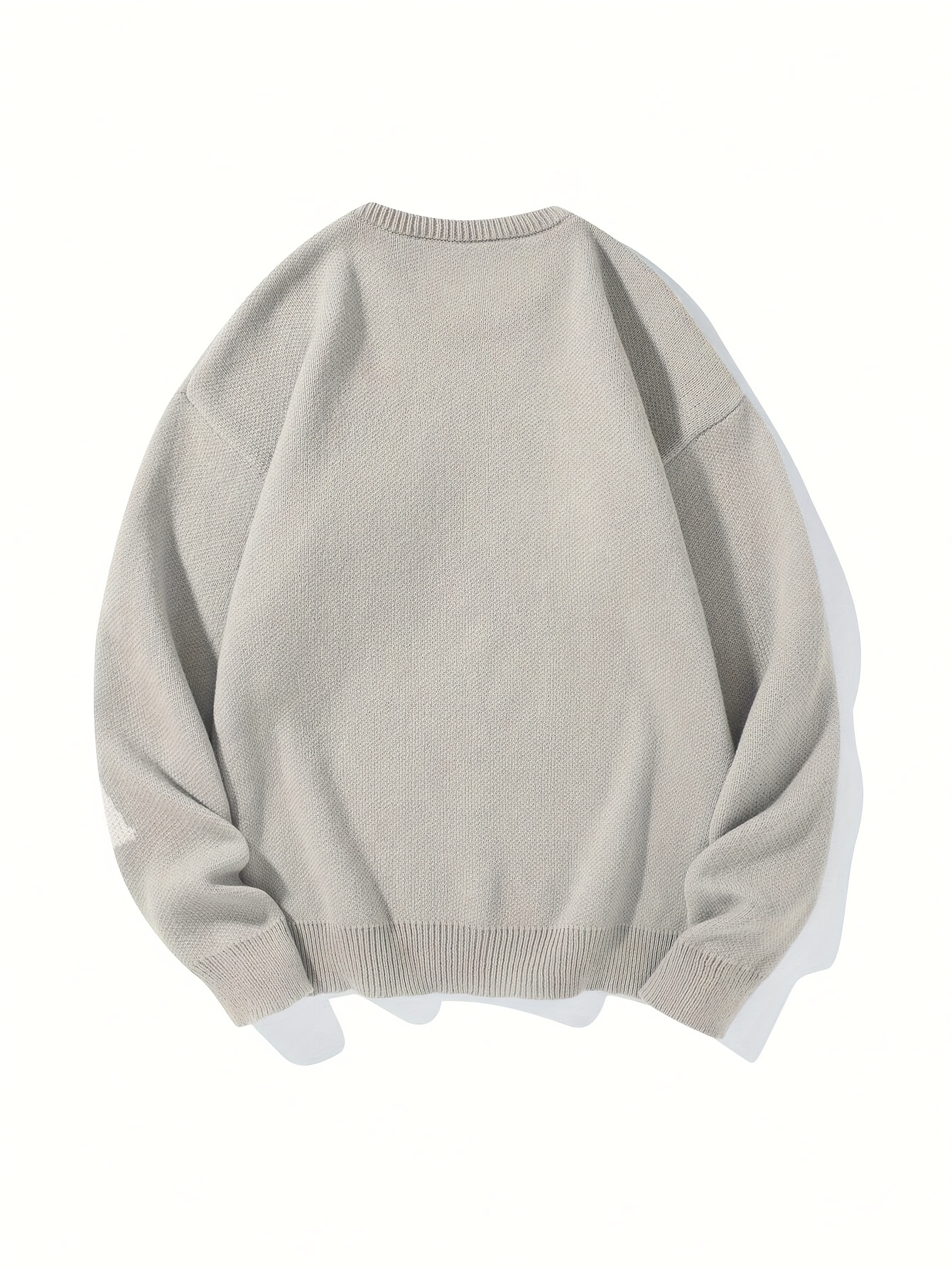 [Winter Streetwear Sweater] Autumn/Winter JNBLDA Men's Streetwear Casual Loose Fit Knit Sweater | Round Neck Long Sleeve Pullover with 'amani' Letter Print, Ribbed Cuffs & Hem