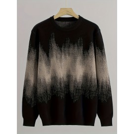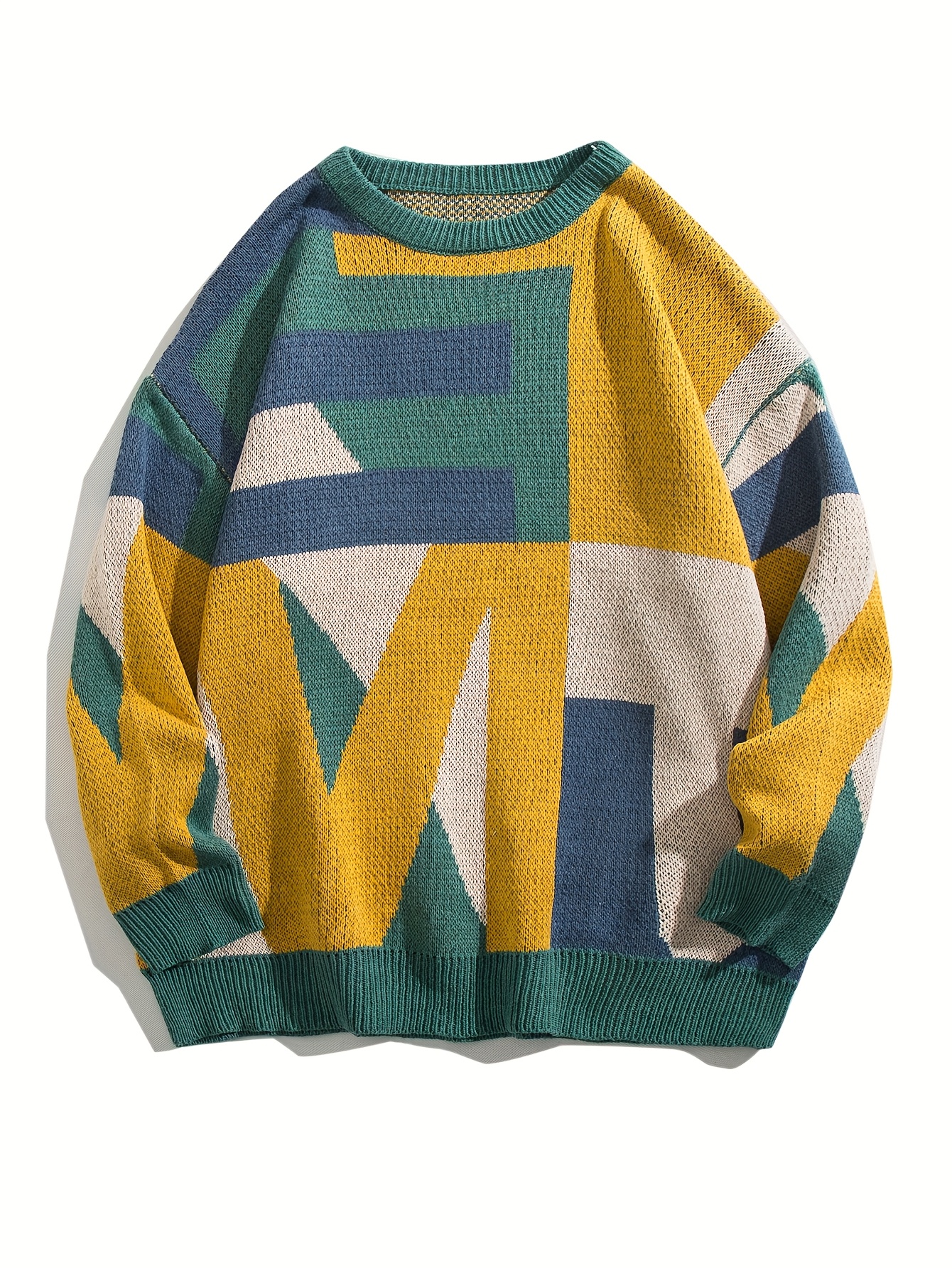 [Winter Sweater] Autumn/Winter Men's Geometric Color Block Sweater | Relaxed Drop Shoulder Fit, Mid-Stretch Fabric, Round Neck & Sleeves, Winter Comfort Clothing, Medium Elasticity Fabric